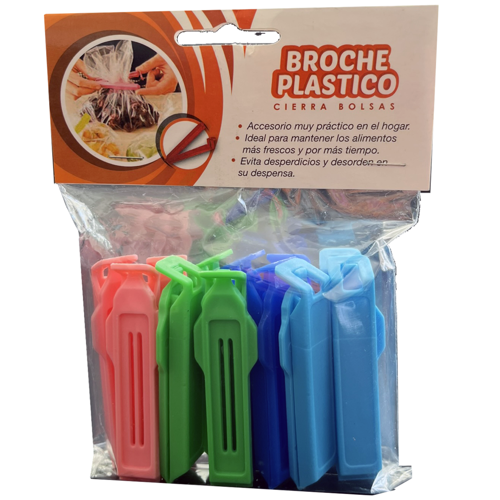 Nuestros broches, fabricados en polipropileno (PP) de grado alimenticio, son seguros, resistentes y reutilizables, diseñados especialmente para mantener tus alimentos frescos por más tiempo.